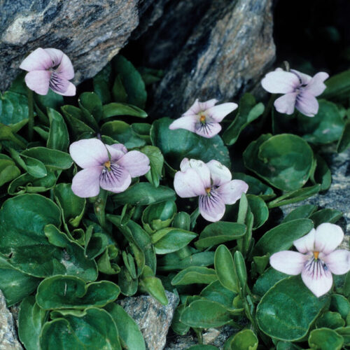 Hierba acaule, con rizomas delgados y estolones normalmente subterráneos. Hojas 1–2,5 x 1–3,7 cm, reniformes, cordadas en la base, de margen crenado, glabras; estípulas mucho más cortas que el pecíolo, anchamente lanceoladas, de margen dentado y ápice fimbriado, membranáceas, glabras. Flores solitarias sobre largos pedúnculos bracteados, zigomorfas, hermafroditas, pentámeras, dialipétalas; sépalos 4,5–5 mm, ovados, obtusos, con apéndice basal de 0,5–1 mm; pétalos de color lila pálido, los superiores erguidos, los laterales dirigidos hacia abajo, el inferior 9–11 mm; espolón 1–2 x 1–2 mm. Ovario súpero, tricarpelar, unilocular. Cápsula 5 x 4 mm, subtrígona, explosiva, sobre pedúnculo erecto; semillas c. 1,5 mm, negruzcas