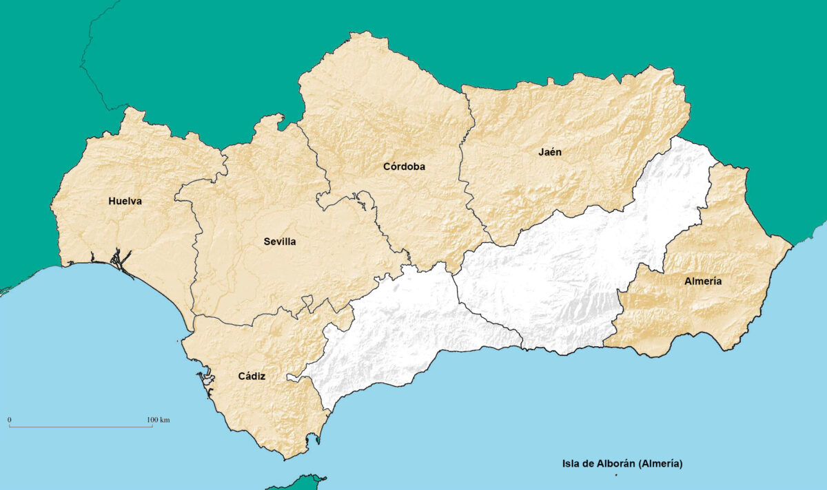 Almería, Cádiz, Córdoba, Huelva, Jaén, Sevilla